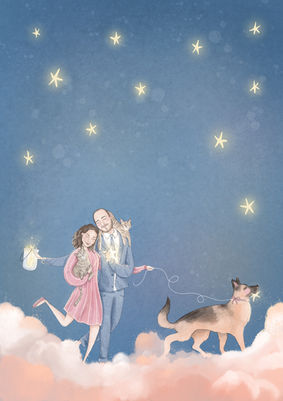 Un tris illustrato! Tre illustrazioni sognanti pensate per raccontare la tua storia e i tuoi momenti speciali.